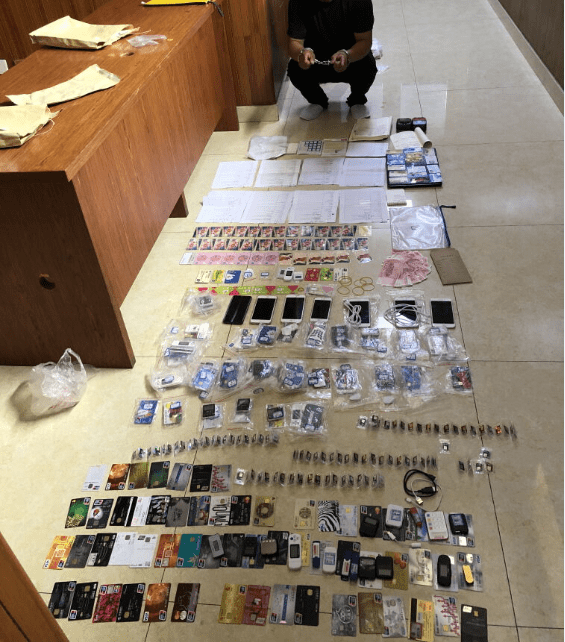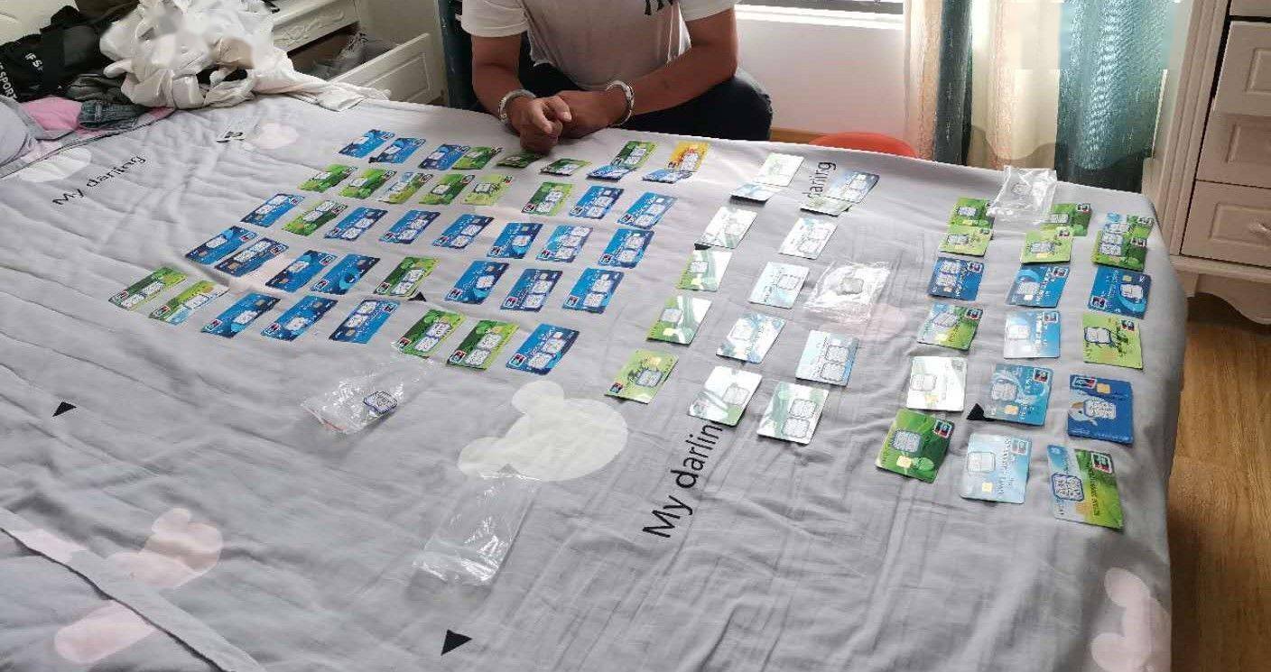 江苏常州警方抓获的犯罪嫌疑人,缴获大量用于犯罪的“两卡”。公安部提供