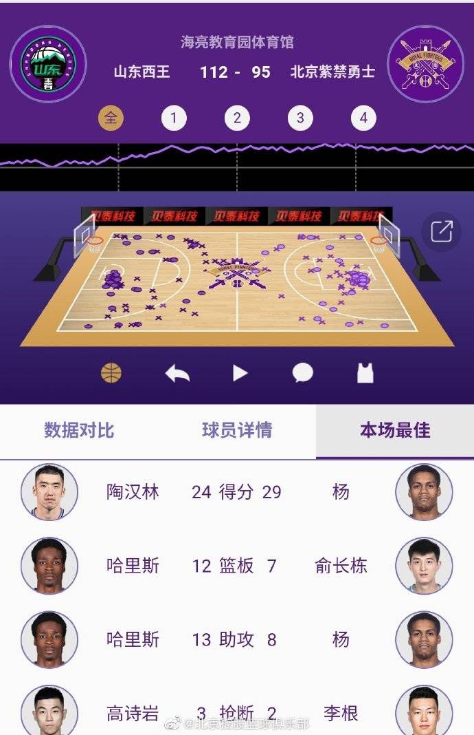 北控男篮以95比112再次不敌山东队。图/社交媒体