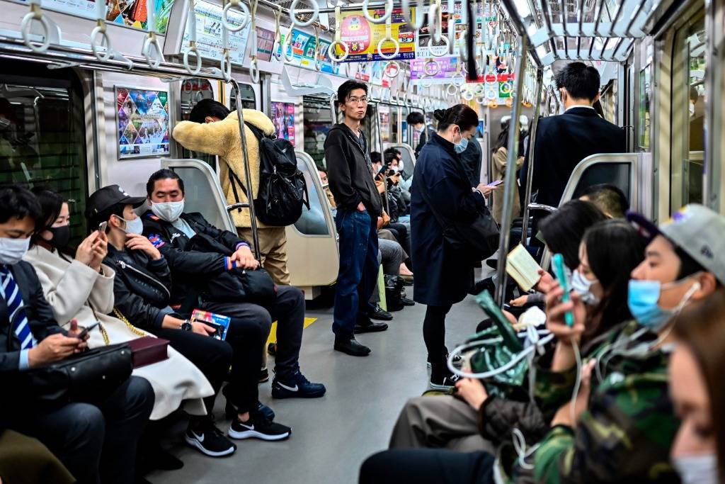 这是11月17日在日本东京拍摄的戴口罩的通勤者。新华社/法新