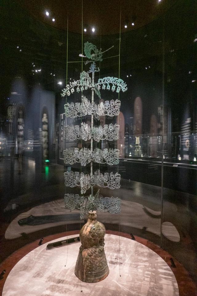 现在所看到的是青铜树也叫做摇钱树,你看看上面的各种漂亮的装饰了没有?