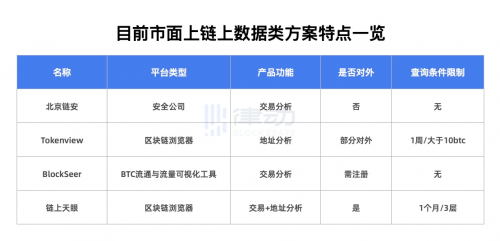 提供类似功能的工具也并非只有欧科云链OKlink,为了对比,律动 BlockBeats 将目前市面上的类型产品和功能进行了汇总,整理如图: