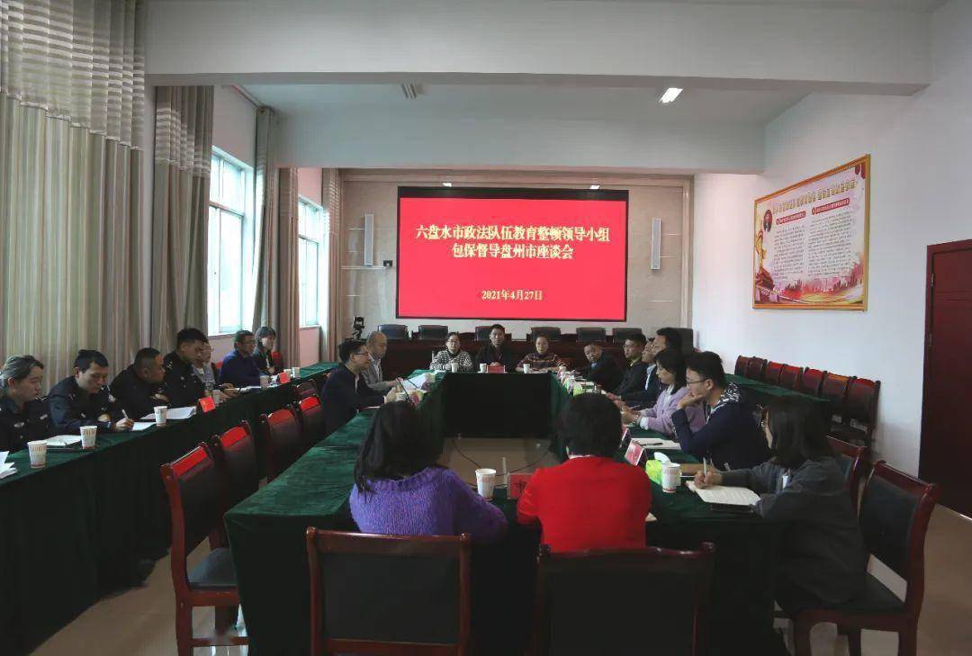 4月27日,六盘水中院党组书记、院长管劲松到盘州市督导政法队伍教育整顿工作。督导采取召开座谈会、应知应会知识测试、下沉石桥镇相关政法单位等方式进行。盘州市委常委、政法委书记韩文杰参加座谈。