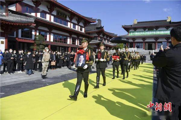 礼仪队手捧袁隆平遗像、灵牌和花篮,