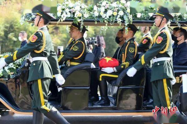 图为礼仪队将袁隆平院士的骨灰送往安葬地。杨华峰 摄