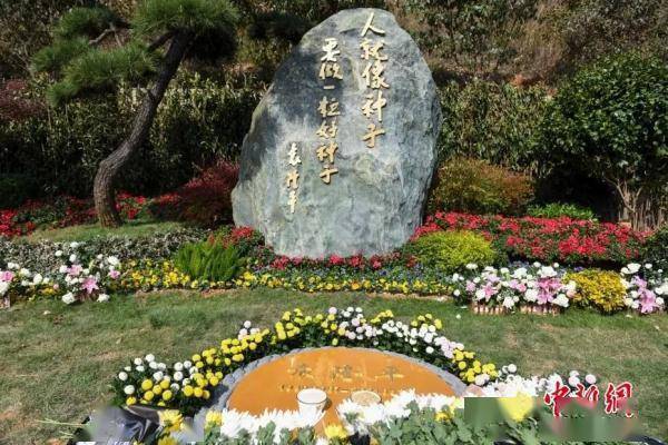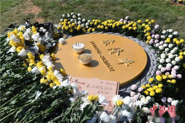 图为鲜花围满袁隆平院士墓碑。杨华峰 摄