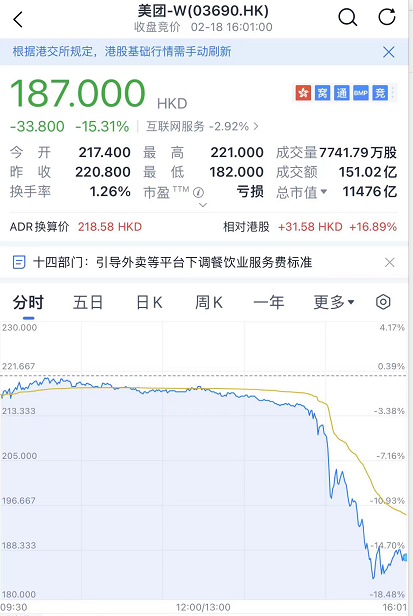 18日下午,港股这边,美团的股价突然闪崩,一度跌超16%