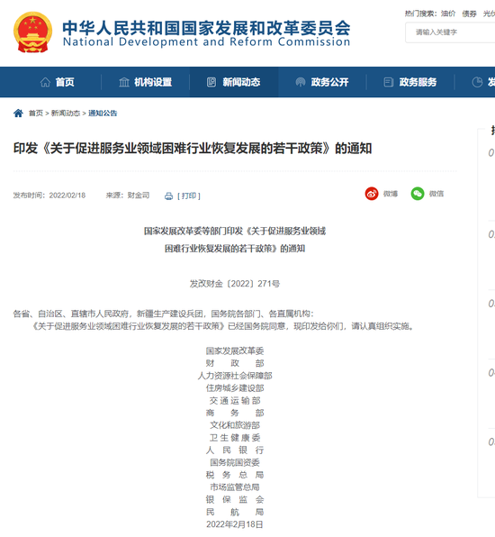 2月18日,国家发改委等14部门印发《关于促进服务业领域困难行业恢复发展的若干政策》。