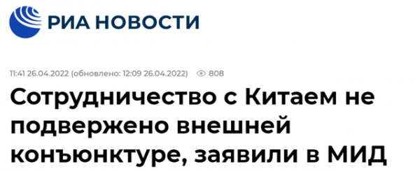 俄新社:(俄)外交部称,与中国的合作不受外部形势影响