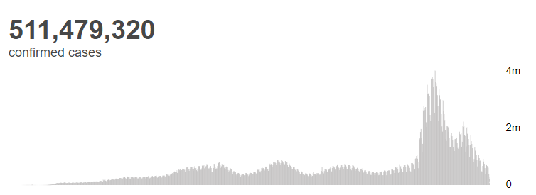 根据世卫组织最新实时统计数据,截至欧洲中部夏令时间5月2日19时46分(北京时间5月3日1时46分),全球累计新冠肺炎确诊病例511479320例,累计死亡病例6238832例。2日全球新增新冠肺炎确诊病例264440例,新增死亡病例1094例。(总台记者 朱赫)