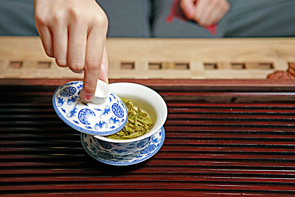 观色:观色主要是观察茶汤的颜色和茶叶的形态。冲泡后,茶叶几乎恢复到自然状态,汤色也由浅转深,晶莹澄清。各类茶叶,各具特色,即使同类茶叶也有不同的颜色。茶叶的形状,也是干差万别,各有风致,特别是一些名优绿茶,嫩度高,加工考究,芽叶成朵,在碧绿的茶汤中徐徐伸展,亭亭玉立,婀娜多姿,令人赏心悦目。有的芽头肥壮,芽叶在水中上下浮沉,簇立于杯底,犹如枪戟林立,使人好像回到茶林之中,重沐茶乡春光。