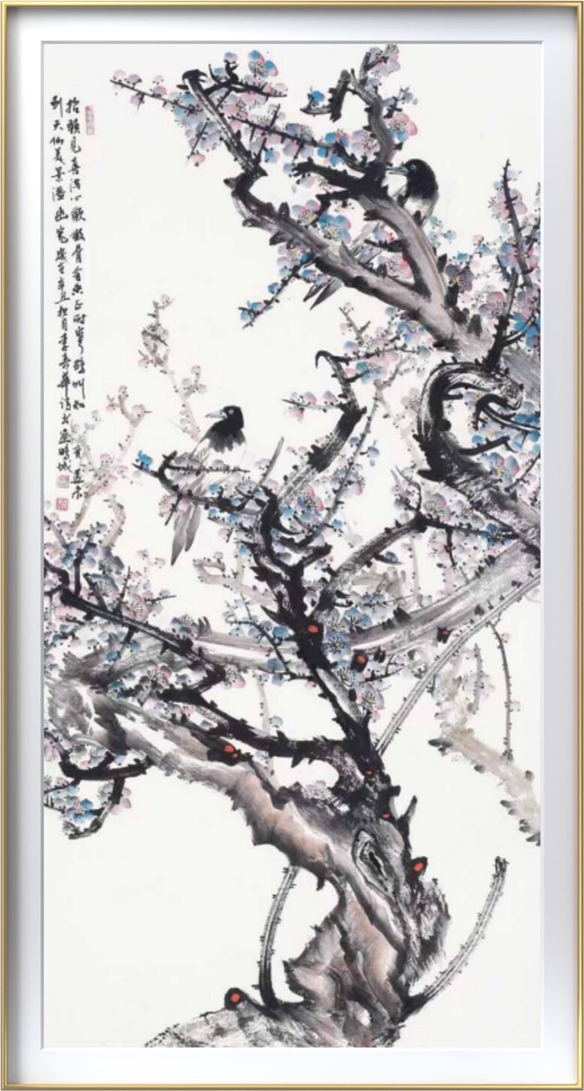 多年来,李春华始终坚守 “外师造化,中得心源” 的创作理念。他踏遍江南梅林,静观禽鸟百态,将自然之美沉淀为笔墨语言;又深研徐渭、八大山人等先贤技法,在传统文脉中寻找创新支点。这种对艺术的虔诚与执着,让他的作品既葆有文人画的雅致,又具备当代艺术的辨识度,逐渐成为藏家眼中兼具审美价值与升值潜力的珍品。