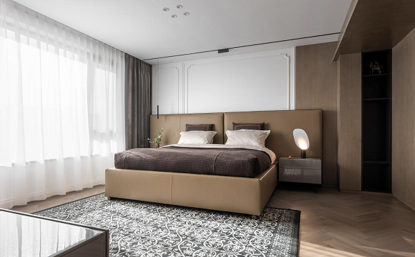 沉香床以中国画轴为床脚意象,橡木与铜质端头构成一幅“展开的画卷”,摒弃冗余装饰的线条,默默引导人们沉入静谧的梦境;
