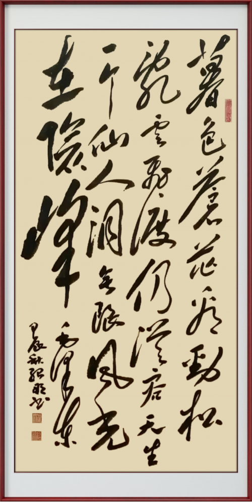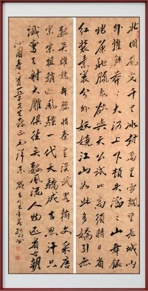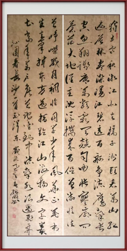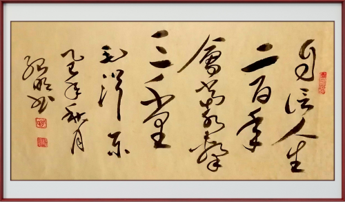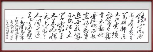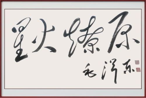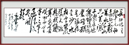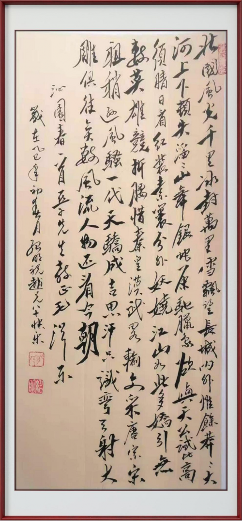 当市场热衷于用润格数字丈量书法价值时,方绍明的作品却在诉说另一种 “财富”:那些在宣纸上游走的线条,是对革命史诗的书法转译,每一处提按顿挫都藏着对理想主义的深切共鸣;那些被权威机构收藏的篇章,不仅是艺术水准的证明,更是一代人集体记忆的视觉载体。他笔下的 “长征” 有雪山的凛冽,“重阳” 含秋阳的厚重,这种将历史情感注入笔墨的能力,让作品超越了装饰性,成为可触摸的精神遗产。