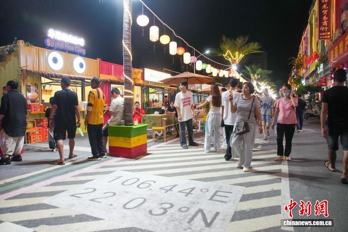 8月27日晚,广西凭祥市,近期开街的浦寨风情街吸引不少市民游客前来“夜逛”。中新社 记者 陈冠言 摄