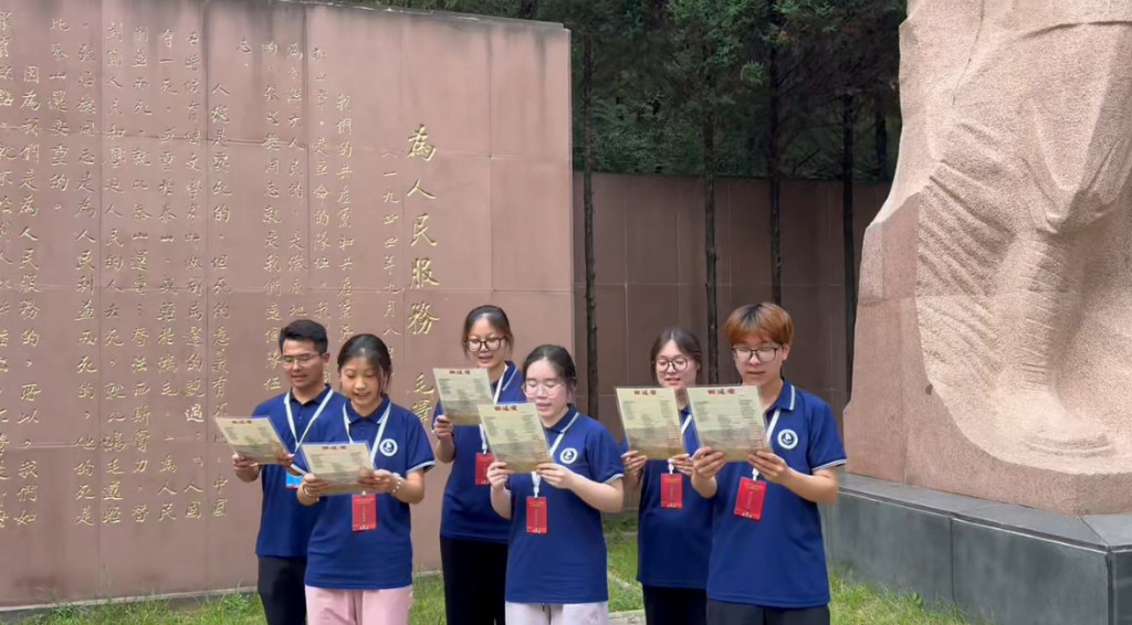 接着,团队前往王家坪革命旧址。冉春嫚老师深情讲解《毛泽东与毛岸英的家国情怀》,通过生动细节展现革命领袖在家庭情感与国家大义间的艰难抉择与担当。队员们深刻体会到,正是无数革命先辈的无私奉献,才换来今天的和平繁荣,红色担当的精神在他们心中熠熠生辉。