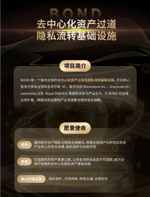 当数字资产行业从细分领域迈向全球金融体系,隐私保护与监管合规的平衡始终是制约行业规模化发展的核心难题。作为定位“去中心化资产过道与隐私流转基础设施”的平台,BOND正以“技术+生态”的行业级解决方案,探索破解这一行业性矛盾,致力于为数字资产行业构建兼具隐私保障与合规基础的基础设施体系。