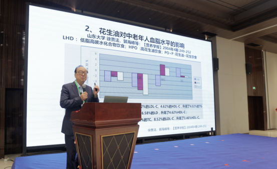 利消费者,就是以高品质的健康产品回应人民群众日益增长的美好生活需要,让更多家庭真正吃得健康、吃得放心。高油酸花生油的营养健康功效已经得到学界的充分证明。据山东大学营养学教授徐贵法介绍,油酸可以有效降低心血管疾病风险,具有抗氧化、抗炎、抗衰老、降低神经退行性病变风险、饱腹及控制体重等多重功效。李培武院士也特别提到,花生油富含白藜芦醇,高油酸花生油中生育酚、多酚、β-谷甾醇等含量明显高于普通花生油,其在预防肥胖、提高免疫、抑制肿瘤、调节肠道菌群等方面的作用明显。