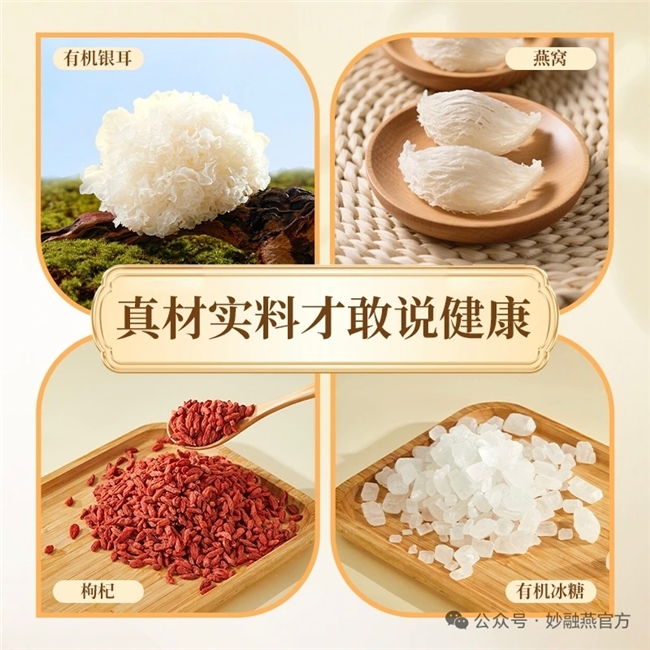 有机认证,从源头铸就信赖。妙融燕产品严选通过权威有机认证的优质原料:富含丰富活性营养成分的燕窝、胶质饱满的福建古田有机银耳,以及天然清甜的有机冰糖。所有原料均遵循严格的可持续种植与生产标准,确保从田间到餐桌的每一步都可追溯、可信任,真正做到纯净无添加。