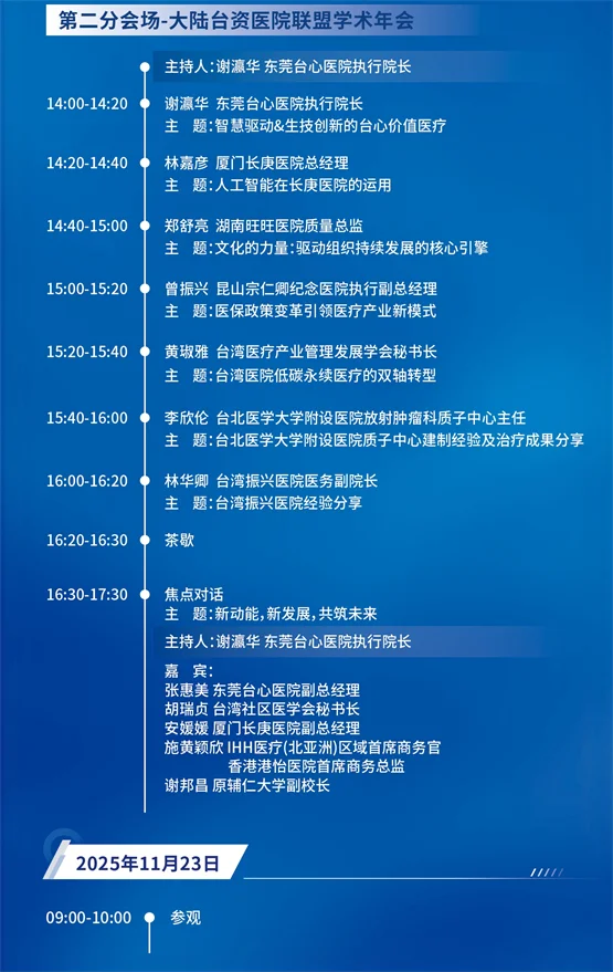本次会议将聚焦国家卫生健康委深化医药卫生体制改革工作部署,主动把握行业变革新机遇、积极面对发展新挑战,以创新驱动为核心、以提质增效为抓手,探索社会办医高质量发展新路径,增进海峡两岸及港澳地区社会办医的经验交流、沟通互鉴、改革创新与共同发展,更加深入地参与和推进健康中国建设。