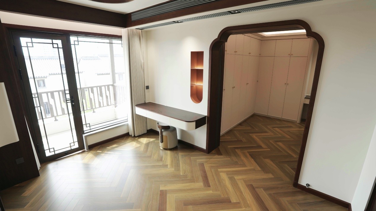 “高端客群不仅预算充足,而且极其注重材料的健康环保和实用性”,何俊超分享道,义乌地区地暖普及率超过90%,石晶地板优异的导热性能正好解决了传统木地板的痛点。此外,当地众多朝鲜族聚居,朝鲜族习惯光脚在家、甚至席地而坐,对地面的环保性、防潮性和舒适度要求极高,而拥有“零醛添加、安全防滑、防水防潮”等八大性能的乐迈石晶地板,恰好完美满足他们的多样化需求。