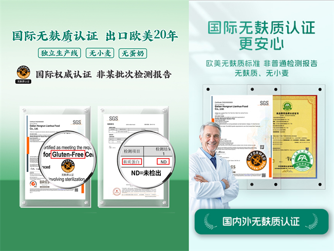 原料上精选兴凯湖保护区的有机东北粳米粉,高寒黑土地还能富集营养,从源头降低风险;生产环节独立无麸质生产车间,严格执行无麸质管理系统(GFMS),每环节都有检测,其成品麸质含量小于5毫克/公斤,远优于20毫克/公斤标准线,是高标准的无麸质产品。