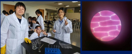 在IGCSE的细胞实验课上,第一次有气泡——重制;第二次找不到细胞核——调焦距;第三次——成功!在细胞主题学习中,学生通过显微镜观察紫色洋葱细胞在盐和水溶液中的变化,用相机记录细胞形态,完善生物笔记。