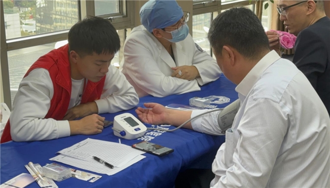 活动现场设置了血压测量与口腔检查两大核心服务专区。血压测量点位前,志愿者动作娴熟地为职工绑上袖带、调试仪器,逐一记录测量数据,并针对血压异常情况给出饮食、作息等方面的温馨提示。