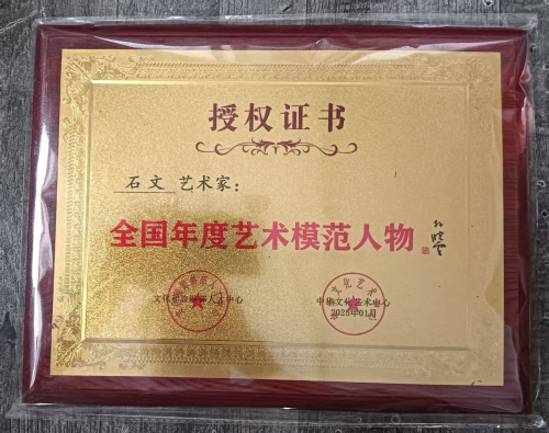 2025年2月一带一路文化旅游促进会和影响世界十大金牌艺术家组委会授予“影响世界十大金牌艺术家”称号。