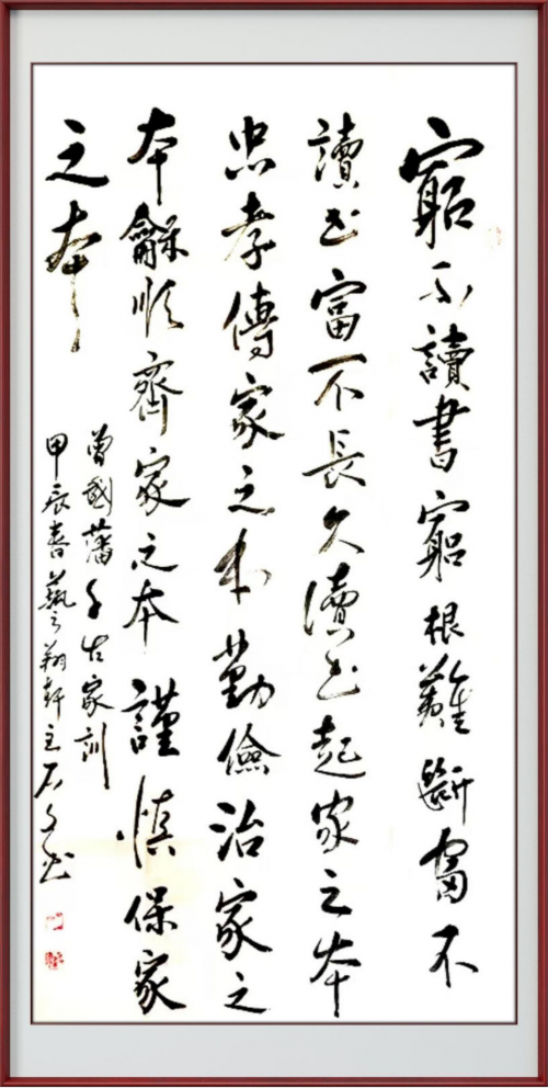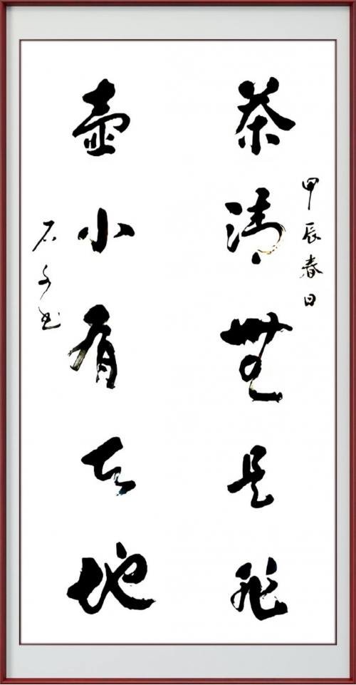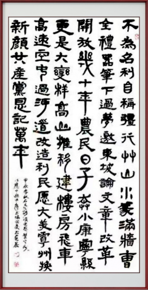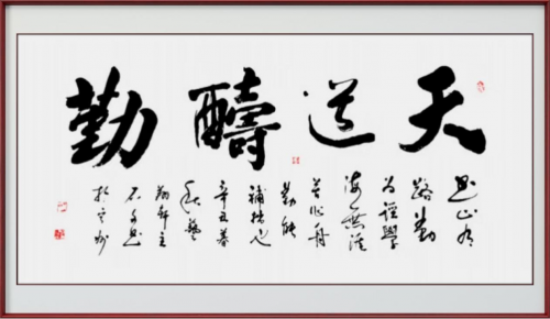 他的书法里总带着陇东高原的粗粝与厚重。一撇一捺似黄土高原的沟壑纵横,一提一顿如浦河川的流水蜿蜒,在规与矩的博弈中,生长出独属于这片土地的艺术筋骨。这种从血脉里流淌出的创作灵性,让他的作品摆脱了刻意雕琢的匠气,每一幅都像有了呼吸 —— 楷书的端庄里藏着山风的凛冽,草书的纵逸中裹着河谷的灵动,仿佛能听见笔墨与故土的私语。