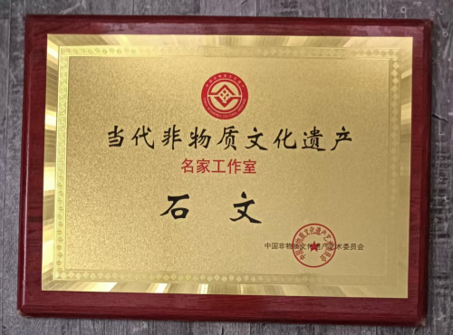 中国非物质文化遗产艺术委员会颁发石文名家工作室。
