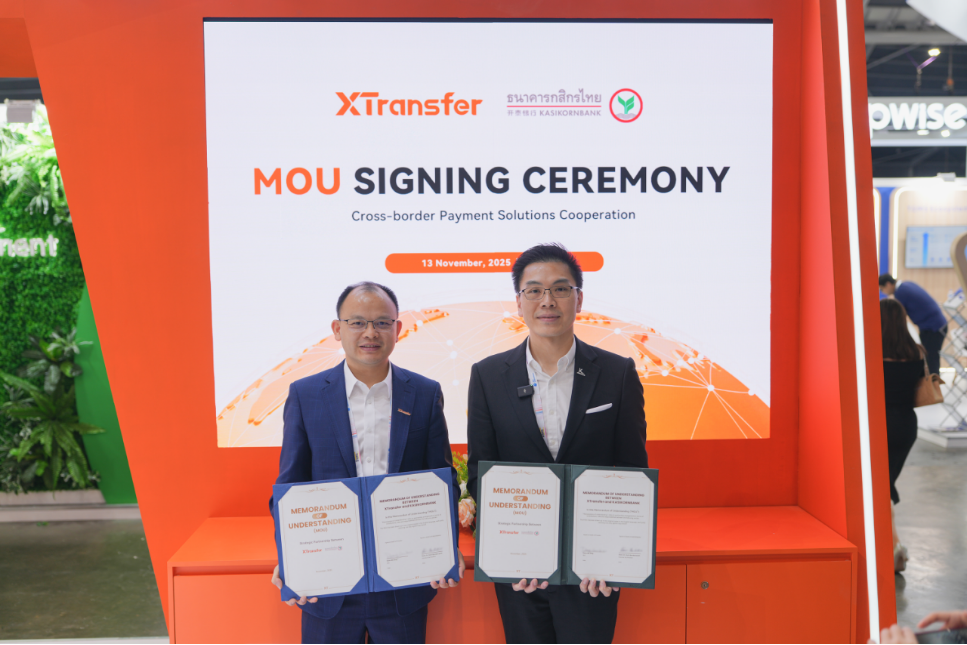 11月14日,中国B2B外贸金融第一平台XTransfer和东盟与中日韩(简称“东盟+3”)地区领先的区域金融机构开泰银行(KBank),在“2025年新加坡金融科技节”期间签署合作备忘录。双方将携手为中小外贸企业,在东盟重点市场提供一站式跨境金融解决方案,合作重点包括跨境收付款、外汇兑换与流程整合,旨在提升贸易效率并支持中小企业成长。