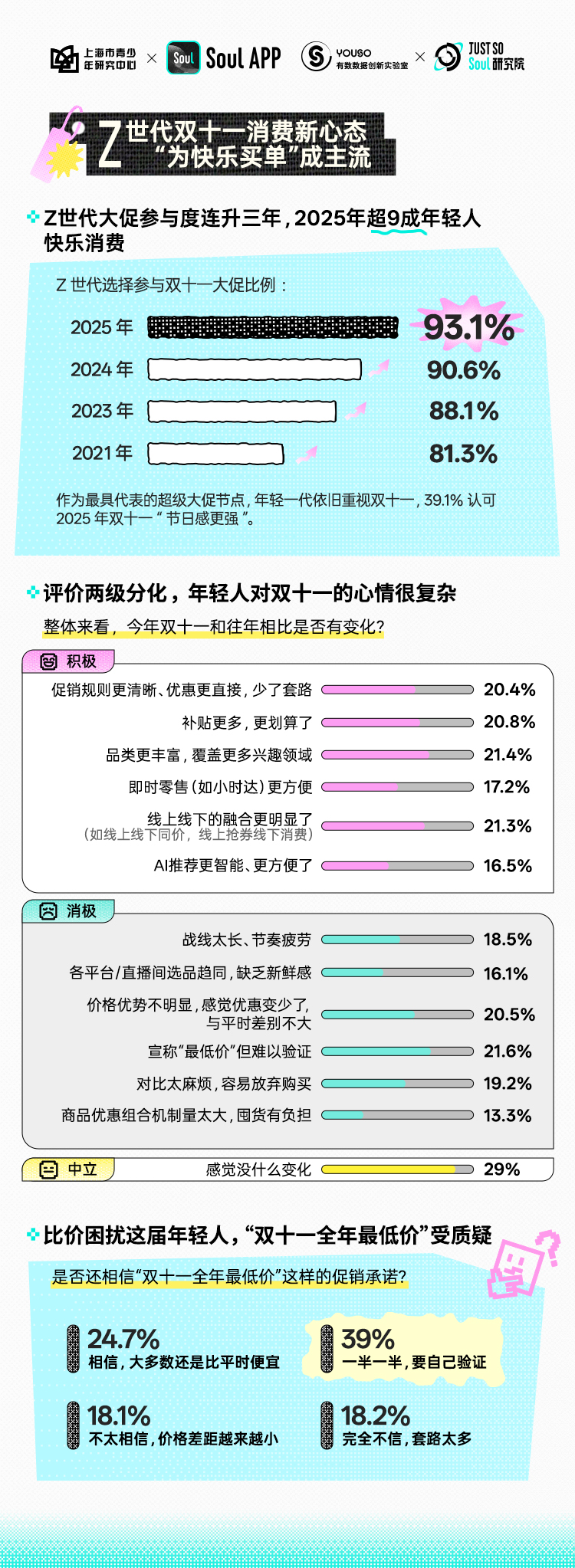 在Z世代成为消费主力的当下,双十一的内涵已远超单纯购物节,演变为融合消费、文化与社交的年度盛事。为揭露新一代的价值取向与生活态度,Soul创始人张璐团队联合上海市青少年研究中心发布《2025 Z世代双十一消费行为报告》。