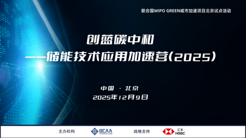 12月9日,由创蓝联盟主办,汇丰中国提供战略支持的创蓝碳中和储能技术应用加速营(2025)在北京顺利举办。17家创新储能技术企业代表集中亮相入营,并进行了储能技术集中培训以及行业高端对话。6家入营企业进行了重点展示,与产业需求方及投资机构现场交流。现场还签署了3组储能技术应用合作战略协议。三十余家储能技术需求方代表,四十余家关注储能技术投资代表,以及行业专家、科研机构代表、媒体代表等150余位嘉宾参与了此次活动。本次活动还得到了世界知识产权组织绿色技术平台、北京市知识产权局、北京绿色金融与可持续发展研究院、中关村科技园区东城园管理委员会、阿美战略投资、中关村国际的大力支持。活动同时也是联合国WIPO GREEN城市加速项目北京试点开展的加速活动之一。