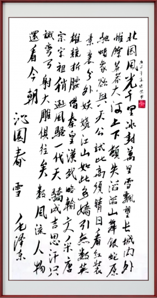 其作品的收藏价值,更源于艺术之外的精神重量。作为“中华红色功勋艺术家”与“传统文化宣传人”,他将家国情怀注入笔墨,使作品超越审美维度,成为文化传承的载体。从央视签约艺术家到国际展赛常客,从国礼珍品到艺术珍藏酒收录,这份跨领域、跨地域的认可,印证了真正的艺术财富从不局限于尺幅,而在于其文化传播力。