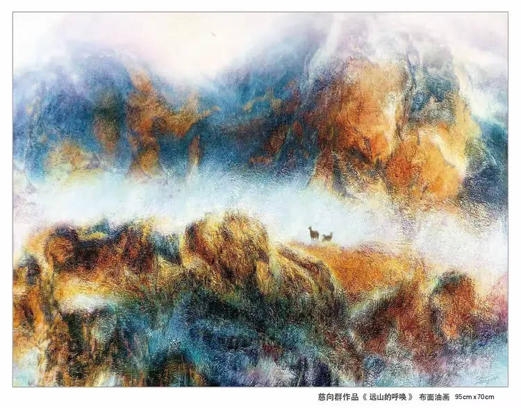油画写实众所周知,著名油画家慈向群却独立新功,借助中国画的意境和意蕴之法,把油画带进写意的境界,油彩似水墨,或流动氤氲,或凝厚枯奇,或交融湮会,把天地常态,用迷彩之法,构成奇迹,成为油画意境化,意蕴化的卓绝之功。中西文化的交流与交融,贴情合意,天衣无缝,体现着他对不分地域国别优秀文化的深谙之道。油画写意,意蕴纷纷。并不是我们常见的越过印象成抽象的油画。抽象油画完全抛弃的印象的美感,以随意无形为特色,以不入自然,远离现实辨识标准为异质。