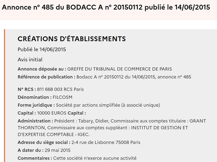 (以上信息来源于法国的官方民商公告公报,具有法律效力)