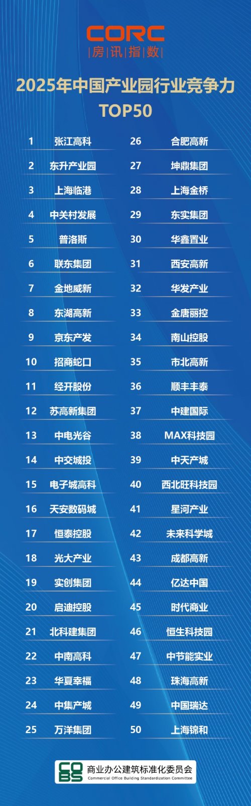 值得关注的是,“2025中国写字楼产业园行业竞争力100强”榜单首次将行业竞争力系列(TOP100榜单)和年度影响力系列(中国商业地产金厦奖)分开排序,进一步提升了排名的严谨性与专业性。