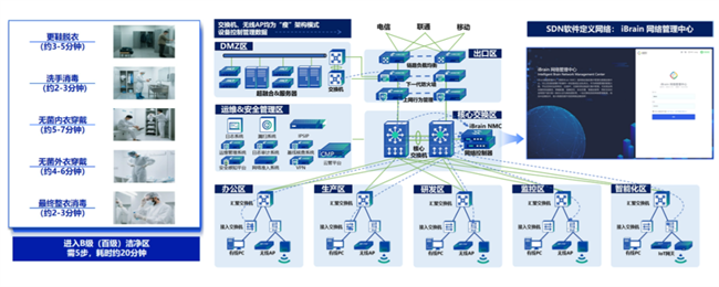 为了提高IT服务响应效率,力生制药车间中的交换机、无线等,均采用“瘦”架构模式(图三),转发和控制数据相互分离,所有网络设备的管理数据将汇总到信锐iBrain 网络管理中心,打造SDN软件定义网络。