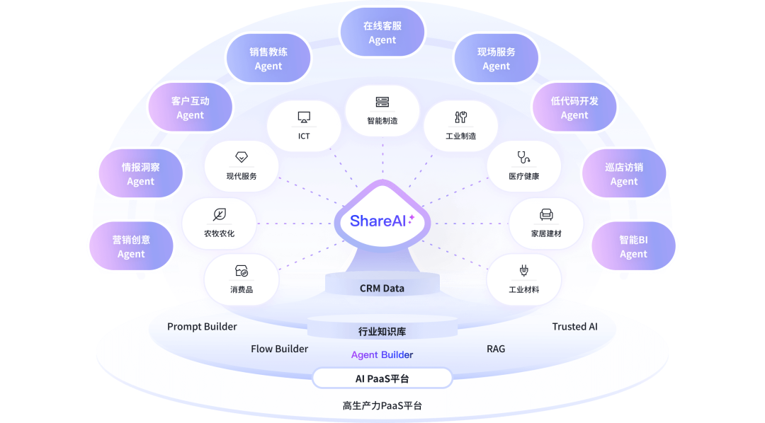 纷享销客Share AI以“AI+CRM+行业智慧”为核心设计理念,通过构建覆盖营销、销售、服务全链路的智能体矩阵,为企业提供场景化、确定性、平台化、安全可信的智能化解决方案,全面赋能企业实现效率倍增与确定性增长。