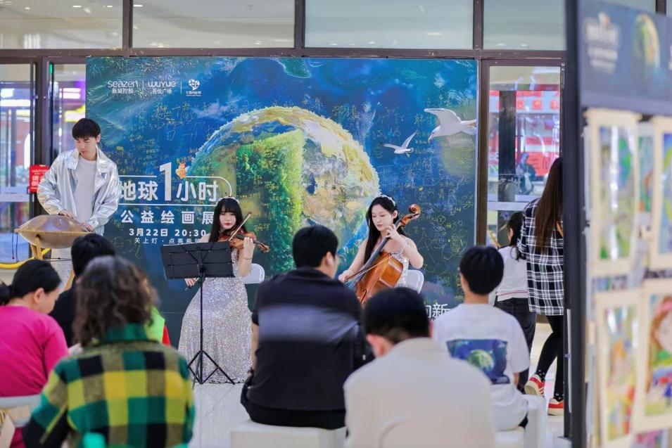 当环保理念融入春日生活,天津津南吾悦广场在3月28日“地球一小时”当天,以“与地球共‘熄’”为主题,开启一场兼具诗意与力量的环保行动。1号门外广场上,不插电弹唱音乐会率先奏响,来自津南区周边音乐社团的民谣音乐人,以木吉他、手鼓等原声乐器,在轻柔旋律中传递低碳生活理念。当夜幕降临,音乐会进入高潮,全场同步启动地球一小时熄灯仪式,消费者在烛光与星光的陪伴下,聆听“绿色之声”主题弹唱,感受与地球同频呼吸的静谧时刻。
