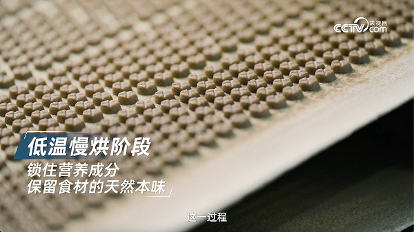 成型后的粮胚,随即进入到低温慢烘的阶段。区别于传统高温膨化,鲜朗独创的“鲜肉低温烘焙”工艺,能在低温条件下精准锁住食材营养与原生风味。
