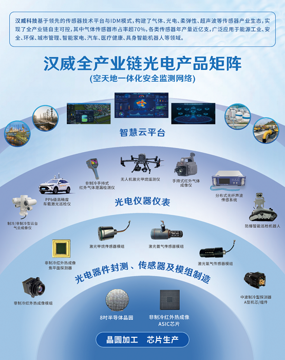 在光电传感领域,汉威科技构建了从晶圆芯片、激光器到传感器、仪表整机的全产业链生态。这一布局使其光电传感器在气体泄漏探测等关键应用中,不仅实现了核心技术的自主可控,更在批量交付能力与产品稳定性上确立了行业前沿地位,广泛服务于工业、商用及民用领域的安全监测。