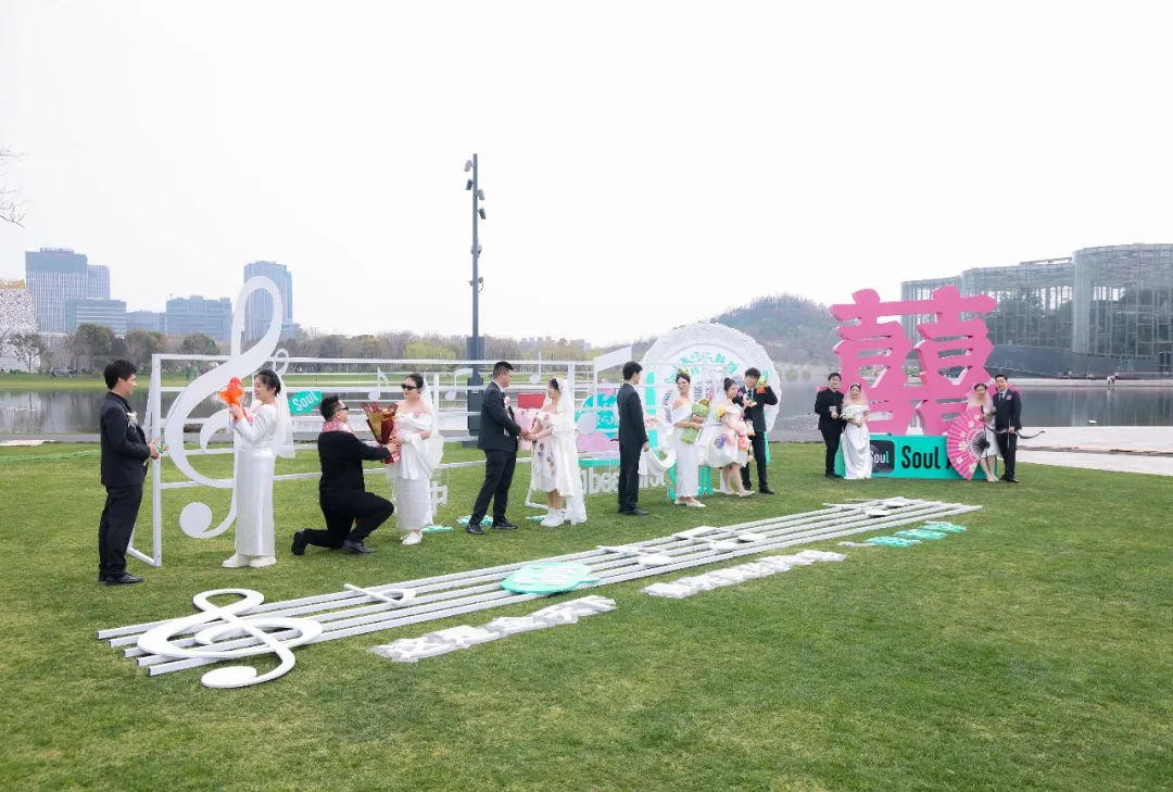 当线上的情绪共鸣,最终走向线下的郑重承诺,会碰撞出怎样的火花?3月22日,一场名为“山盟海誓 爱在浦东”的集体婚礼在上海世博文化公园音乐之林草坪举行。协办方Soul 张璐团队作为这段从虚拟到现实旅程的陪伴者,与所有新人一同,将这份关于爱的宣言,郑重书写在了春天的城市画卷里。