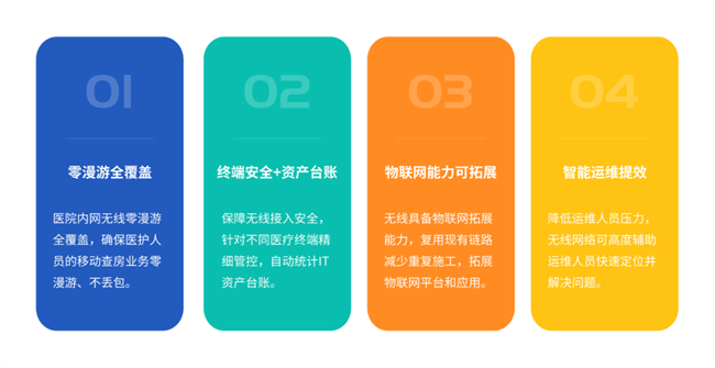 以无线及物联网技术为基石,深度推动医院无线与物联网的有机融合。通过这种深度融合,为移动医疗的顺畅开展以及智慧医院物联网应用的全面建设提供坚实支撑,进而优化患者的就医体验,让医疗服务更加高效、便捷、人性化。