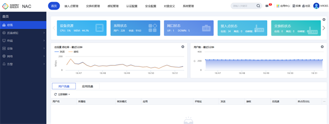 信锐NAC网络控制器内置统一管理平台(图四),以“ONE IS ALL”设计思路,实现有线、无线网络的深度融合管理,无需部署额外软件及硬件服务器,即可实现无线网络从认证、准入、管理到运维的全生命周期管理。
